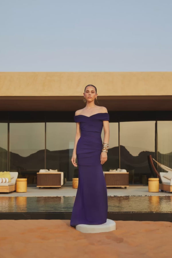 Matilda, zarif ve dramatik bir şıklığın temsilcisi. Bordo tonlarıyla tasarlanan bu omuzları açık elbise, drapeli üst kısmı ve çapraz detaylarıyla vücudunuzu mükemmel bir şekilde vurgular. Uzun eteği, her adımda zarifçe dalgalanarak asil bir duruş sergiler. Kış davetleri, resmi etkinlikler veya özel bir gece için tasarlanan Matilda, sofistike ve çarpıcı bir görünüm arayanlar için ideal.