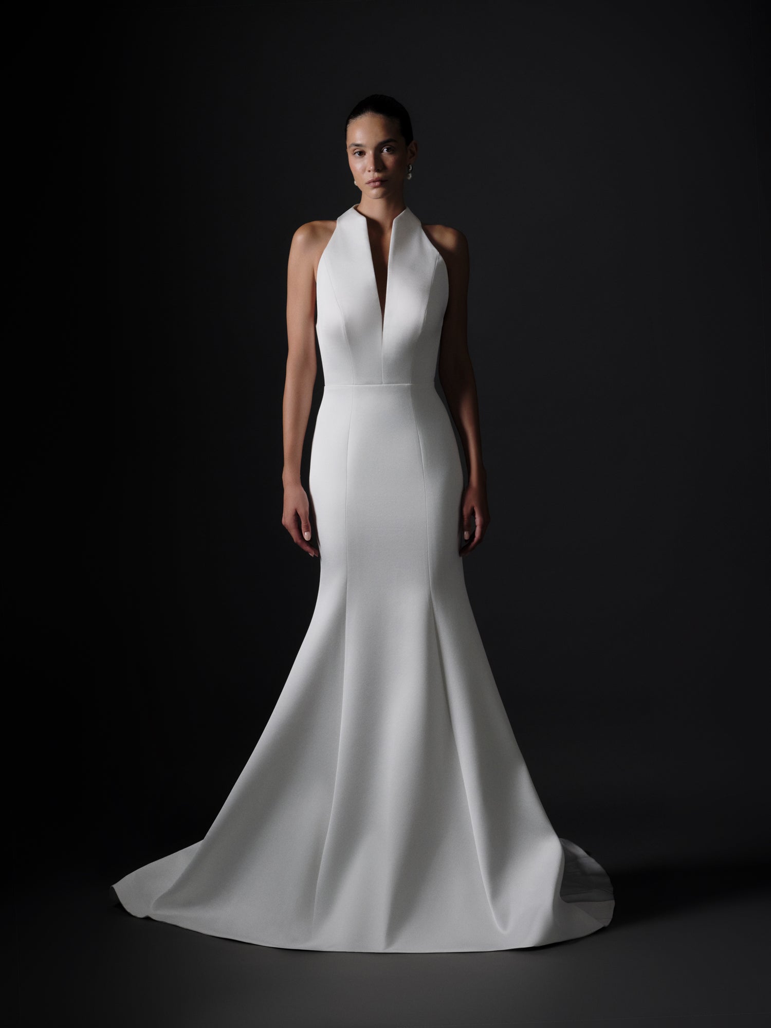 Saf form anlayışıyla tasarlanan Vœu Éternel Dress, derin V yaka ve mermaid silüetiyle zamansız ve güçlü bir bridal duruş sunar.
